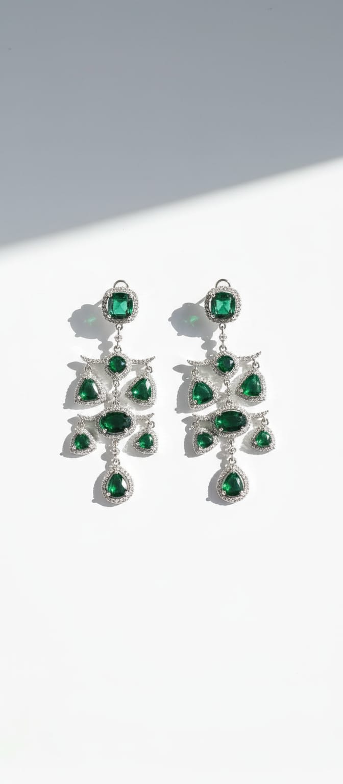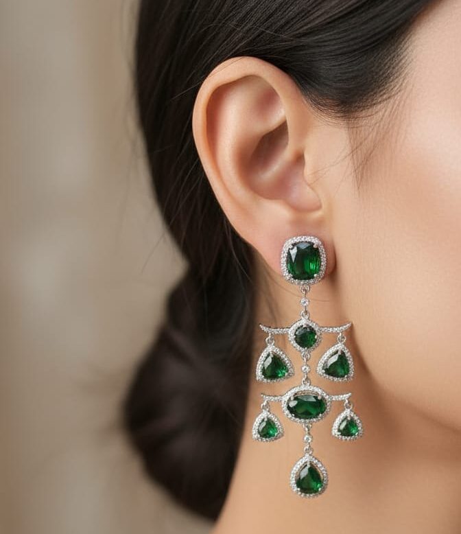 Deep emerald-green stones create an elegant, royal, festive appeal.