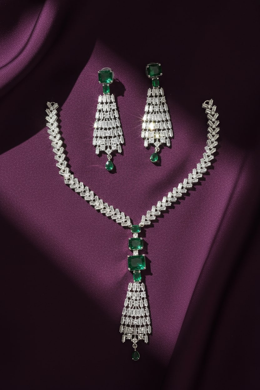 Green Stone Cubic Zirconia Long Pendant Necklace